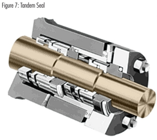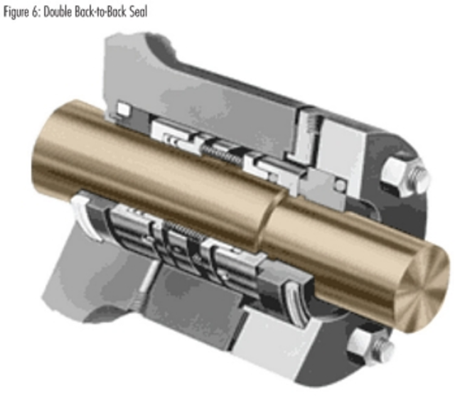 The more common multiple seal configuration is called a Double (dual pressurized) seal, where the two seal face sets are oriented in opposite directions. The features of this seal arrangement are: