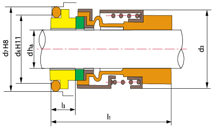 GF03 Long (B-12,B-16) ● Rotary Ring(SiC/TC) ● Stationary Ring(Carbon/SiC/TC) ● Secondary Seal(NBR/VITON) ● Retainer(SUS304/SUS316) ● Spring(SUS304/SUS316) Seal size d(mm) d3 d6 d7 l1 l3 12 1...